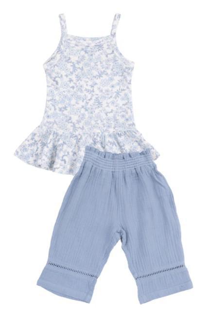 Get ready to fall in love with this adorable duo! The Peplum Tank, crafted from soft ribbed modal, brings a playful yet chic flair, while the Smocked Waist Pants, made from lightweight organic muslin, keep your little one comfy and stylish all day long. This set is perfect for sunny outings, playdates, or just lounging in effortless charm!