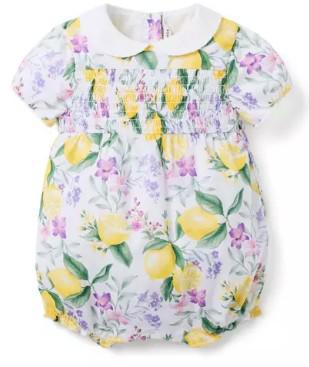 - A lemon-infused favorite that’s just right for first moments. Our puff sleeve romper in pure cotton features a Peter Pan collar, smocked details, ruffle cuffs and a bow at the back.